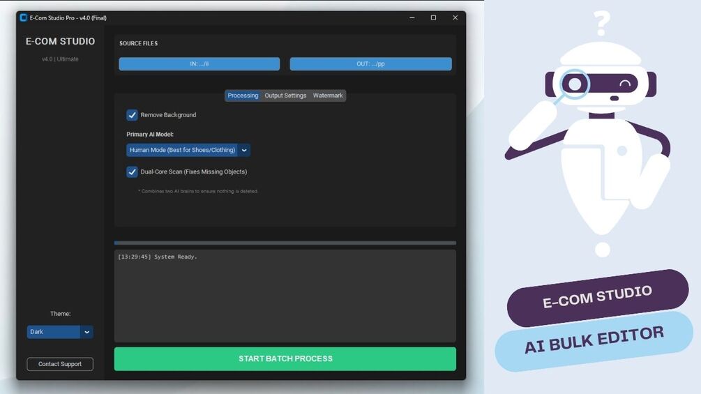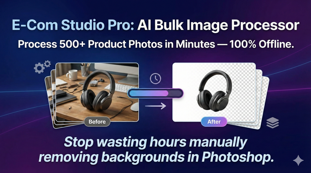 The ultimate desktop tool for Amazon & eBay sellers. Bulk remove backgrounds, watermark, and resize product photos automatically.